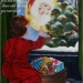 Kerstavond, meisje zwaait bij de volle maan naar de Kerstman die haar net pakjes heeft geschonken.